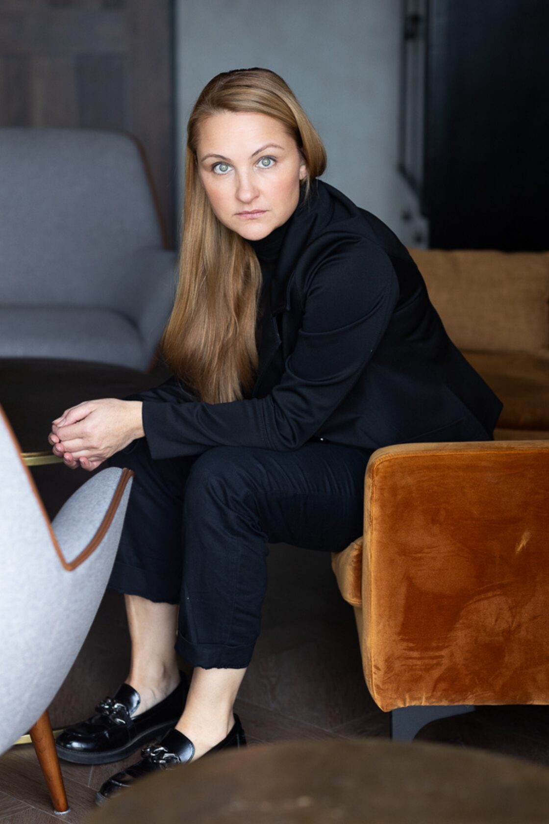 Das Ergebnis ist eine Präsenz, die man nicht künstlich erzeugen kann. Die Fotos von Katharina im Hotel – umhüllt von diesen stylischen Farben, Stoffen und einem wunderschönen Licht – zeigen genau das: Eine Frau, die keine Rolle mehr braucht, weil ihre eigene Ausstrahlung den Raum füllt.